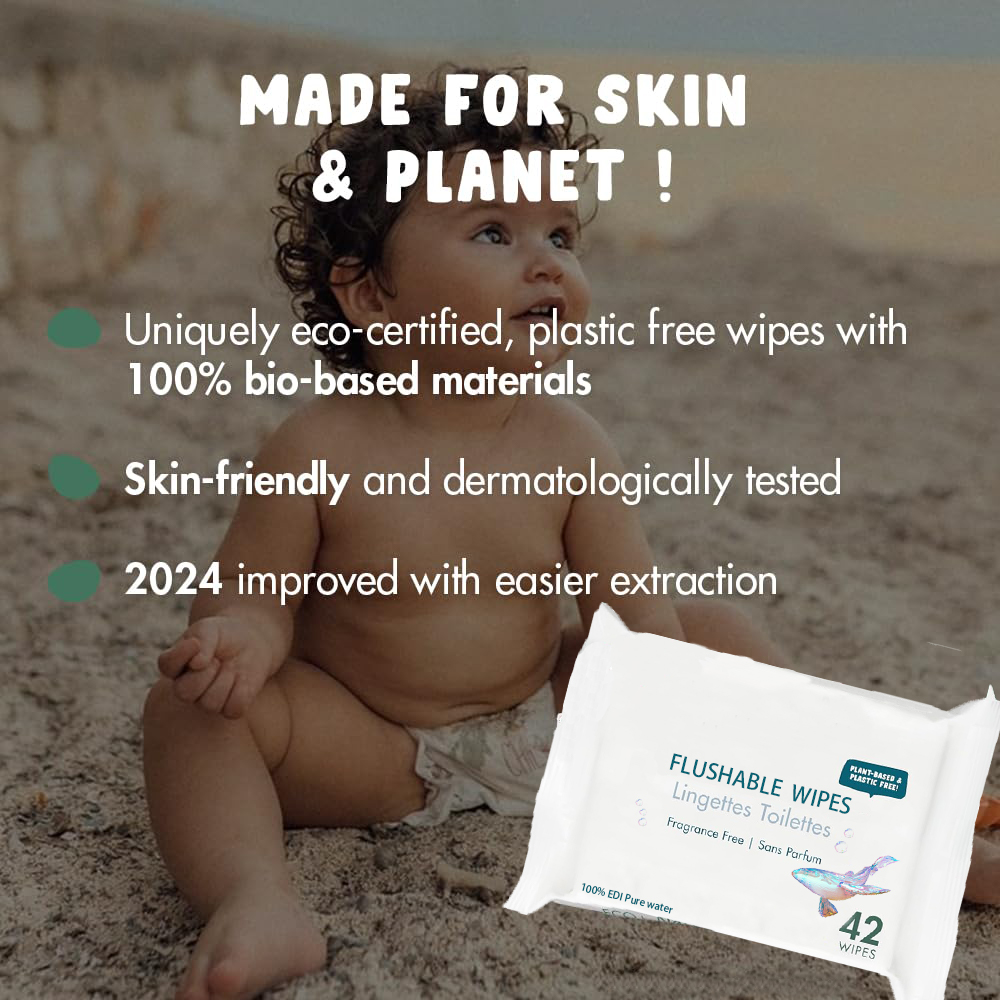 Flushable Bamboo Baby Wipes - Biodegradable & Unscented